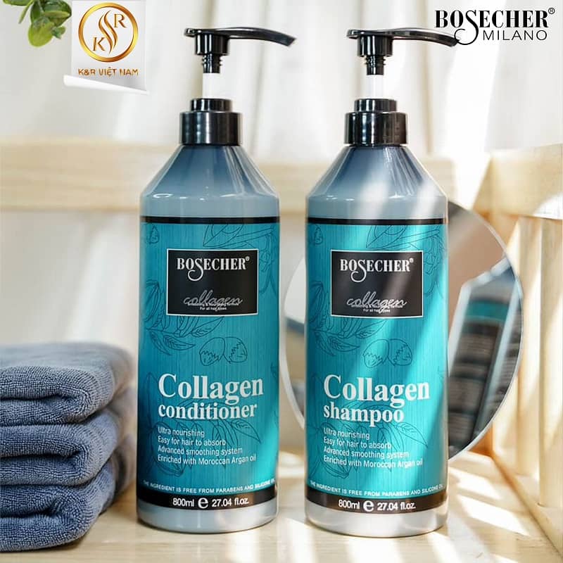 BỘ GỘI XẢ COLLAGEN BOSECHER PHỤC HỒI CHUYÊN SÂU 800ML