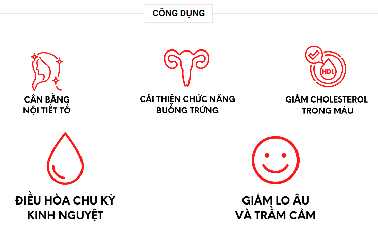 - Cân bằng nội tiết tố hiệu quả, giảm các triệu chứng khó chịu do tiền mãn kinh, mãn kinh.