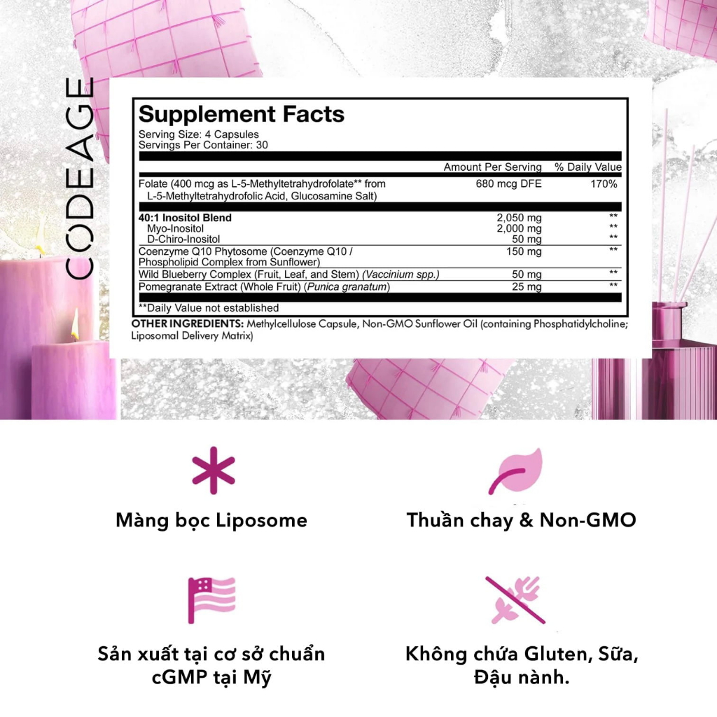 Viên uống cân bằng nội tiết tố Codeage Liposomal Ovarian Inositol 120 viên chính là chìa khóa cho hành trình gìn giữ sắc đẹp và sức khỏe toàn diện của bạn!